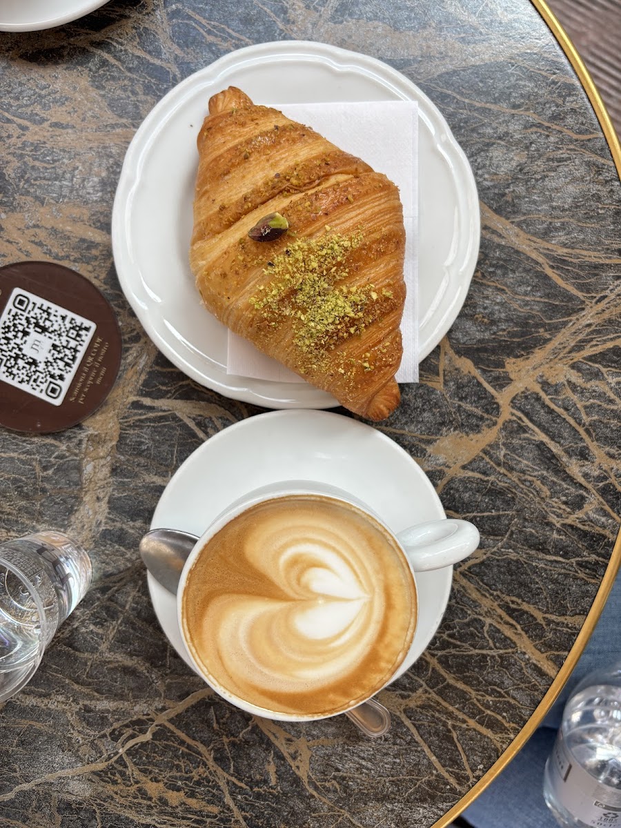 The cappuccino and pistachio brioche were the stuff of dreams! They had a ton of other options as well but this definitely caught my eye and I have no regrets. The place itself is also quite beautiful and busy at pretty much all times from what I could see. I've come back a couple of times since I arrived. Service happens fast but does not always come with a smile, which quite honestly, I personally don't care about as long as I get the food/ drink in a reasonable time (it's not a fast food restaurant) and it's delicious. This place fits that bill and then some!