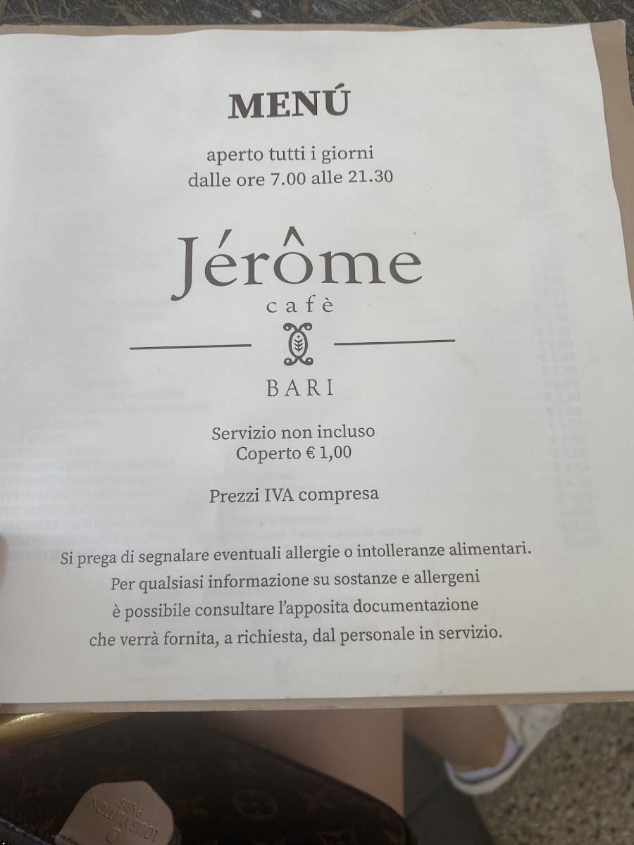 Welcome to Jérôme Café, a hidden gem located in the heart of Bari, Italy. Renowned for its vibrant ambiance and delectable offerings, this café features an enticing menu that dazzles the senses. Customers rave about the luscious pistachio brioche and the dream-worthy cappuccino, ideal for a morning treat. For dessert lovers, the café serves an exceptional red velvet cake, frequently mentioned as the best in town.